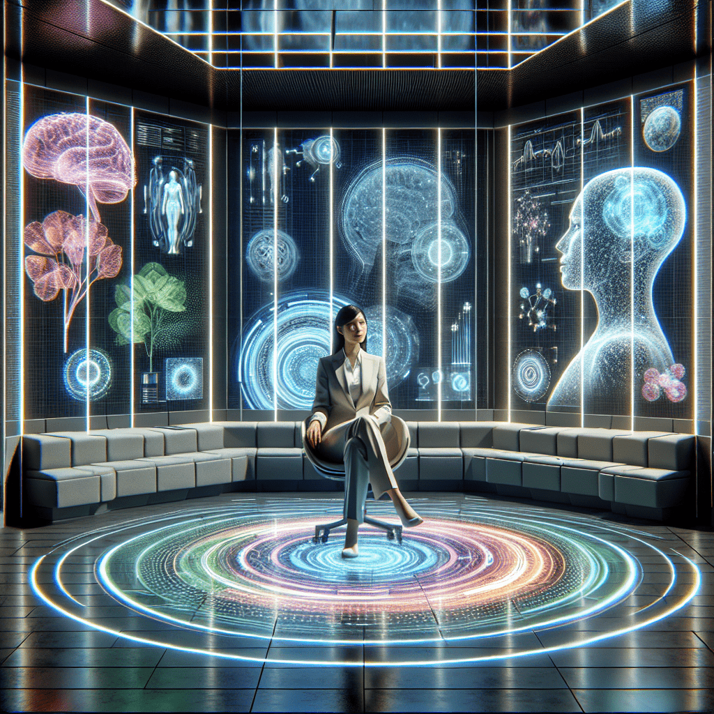 Imagina un espacio que percibe tu estado emocional a través de sensores biométricos incorporados en la estructura biohíbrida. Si detecta estrés, puede transformar la iluminación holográfica en patrones suaves y colores cálidos, o incluso proyectar formas relajantes que interactúan contigo. Si detecta alegría o inspiración, el entorno puede desplegar hologramas vibrantes y dinámicos que potencian la creatividad.